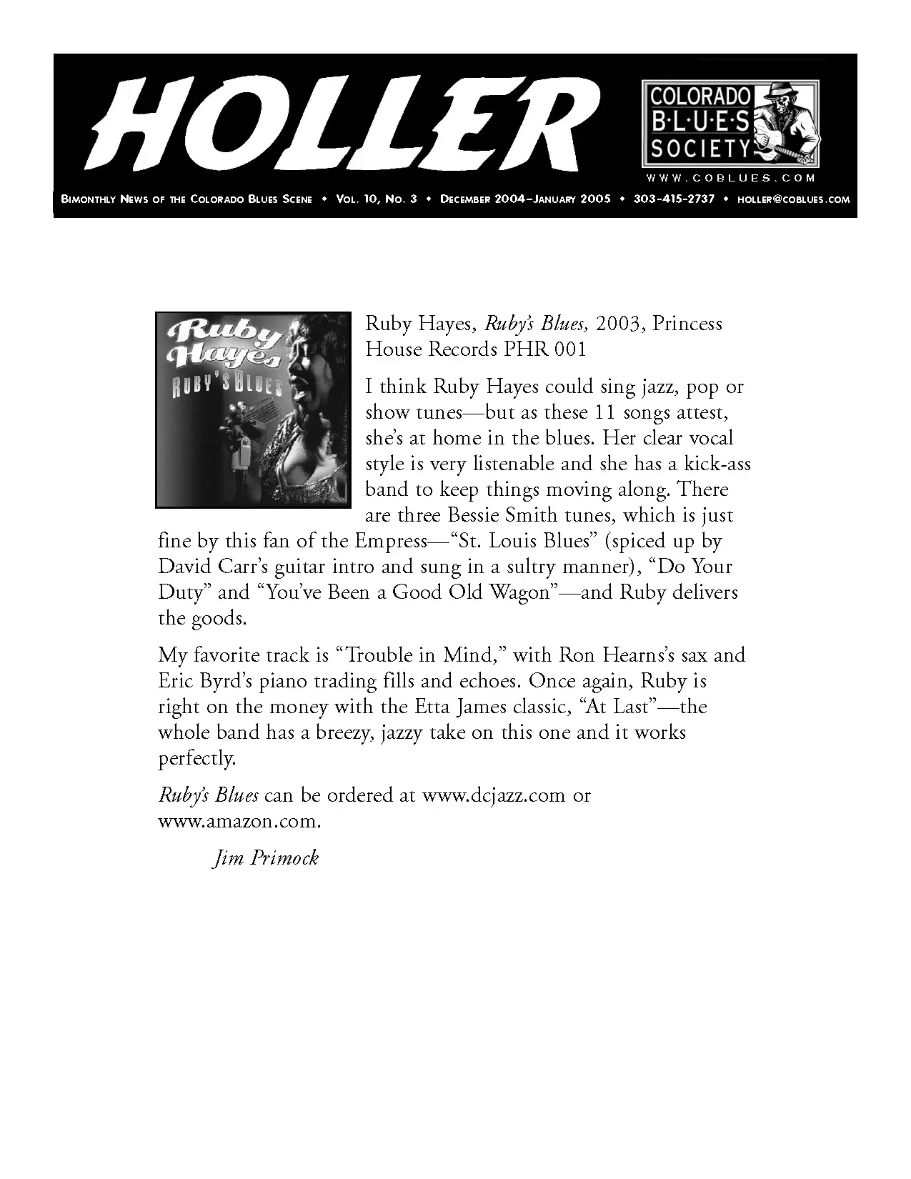 You know how every so often a new artist comes along and shakes up the whole apple cart with the way they do some of the old standards? Well, that's exactly what Ruby Hayes has done and it doesn't sound bad. Actually it sounds pretty good. It took me a couple of songs to get used to it but I like it. She has taken the songs on this CD like "Little Red Rooster" and "I Got my Mojo Working" and sung them her way. She has made them her own and she does it with a voice of a true blues singer. The reason I say "true" is because she has had the honor of playing Bessie in a musical retrospective about the lives of Sarah Vaughn and Bessie Smith. Her voice is cool, calm and reserved in a jazz way that pleases the listener. Her CDs's can be bought on the internet from CDBaby.com and rubyhayes.com. This CD is worth the purchase.