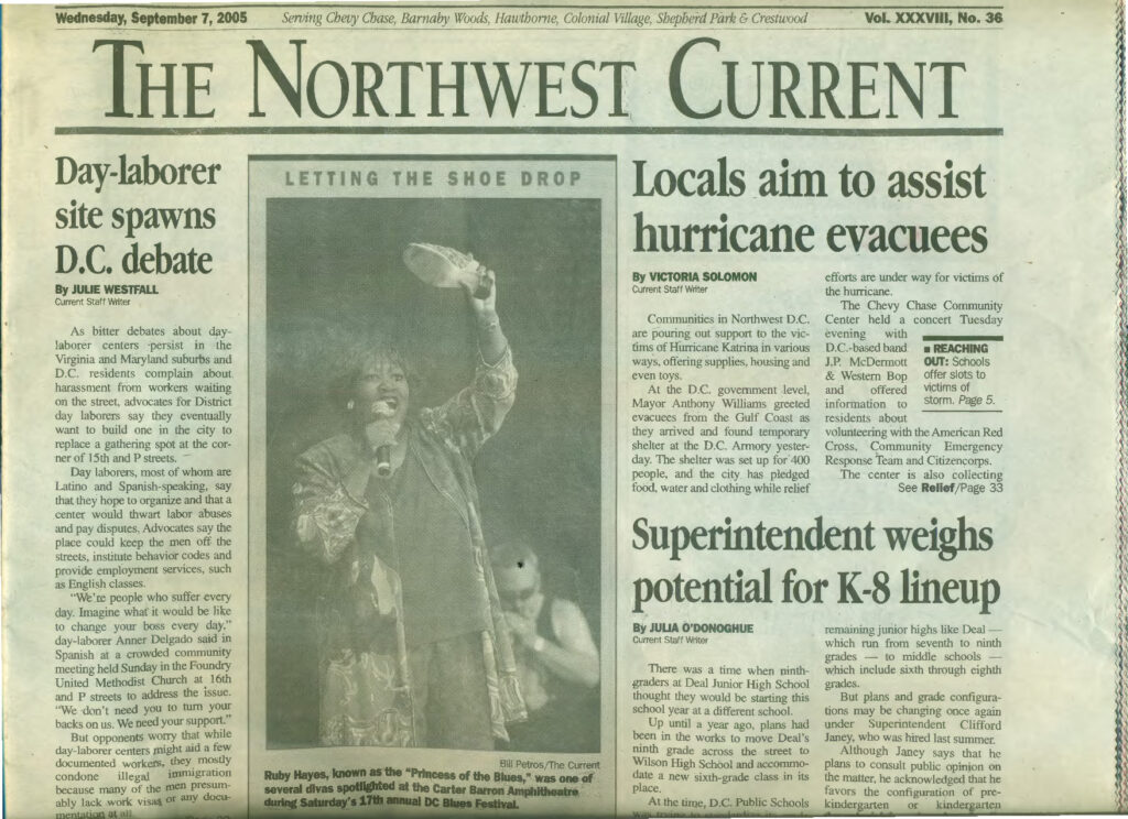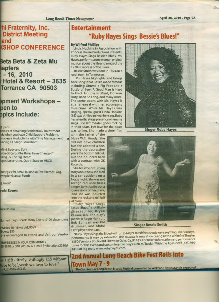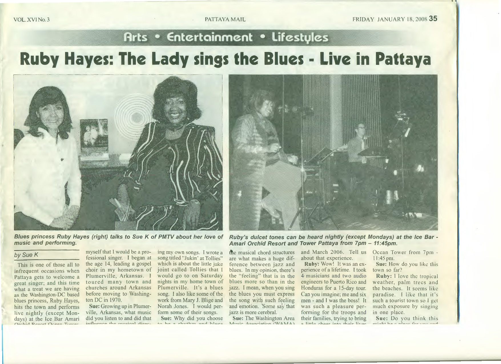Ruby Hayes at Blues Alley "I'm gonna let my hair down and get down with the down-home blues," Ruby Hayes sang at Blues Alley on Monday night. The veteran Washington-based vocalist kept her promise by reprising a collection of earthy and sometimes bawdy tunes that reached as far back as the 1920s. She discovered some of them, she told the crowd, growing up in Arkansas and rummaging through her "grandmother's treasure chest." Hayes isn't a blues belter. She doesn't possess the sort of commanding power that can pin back your shoulders. But she radiates plenty of warmth and personality onstage, especially when paying tribute to some of her chief influences. Bessie Smith, for example, inspired an amusingly animated performance of the classic double- entendre blues "Sugar in My Bowl," while Billie Holiday was saluted with a thoroughly smitten reprise of "Fine and Mellow." Two of the show's biggest crowd pleasers -- the Etta James hit "At Last" and a boisterous, singalong version of "One Scotch, One Bourbon, One Beer" -- alternately softened and enlivened the mood. There were some surprises as well, including Hayes's odd choice for an "early Valentine dedication" ("Meet Me With Your Black Drawers On") and a Mardi Gras-flavored version of "Got My Mojo Working." The latter tune, drawn from Hayes's new CD "Ruby's Blues," found drummer Greg Holloway stirring up clouds of parade dust. Most of the solo space, however, was allotted to pianist Bill Washburn, guitarist David Coles and bassist Joshua Bayer, who often took turns punctuating the arrangements with colorful and spirited choruses.